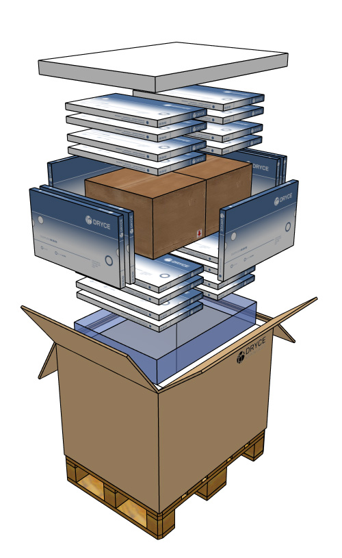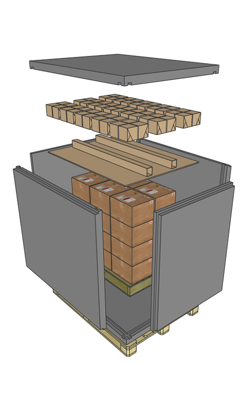 Large-format pallet packaging, pre-qualified for long transits.